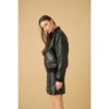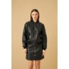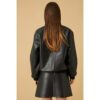 Crocodile print bomber jacket. Features dropped shoulders, raglan sleeves, elastic cuffs and elastic waistband with zipper closure. With two diagonal buttoned flap pockets.