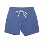 Bañador de cintura fija cuenta con un bolsillo trasero con dos botones, con correa para ajustar ligeramente a cintura, el escudo bordado en el dobladillo delantero y forro de malla para ropa interior.